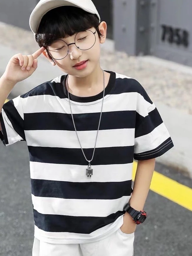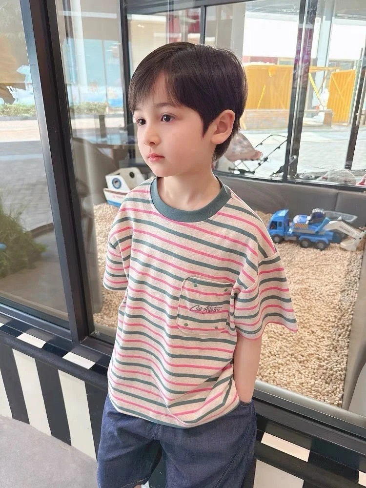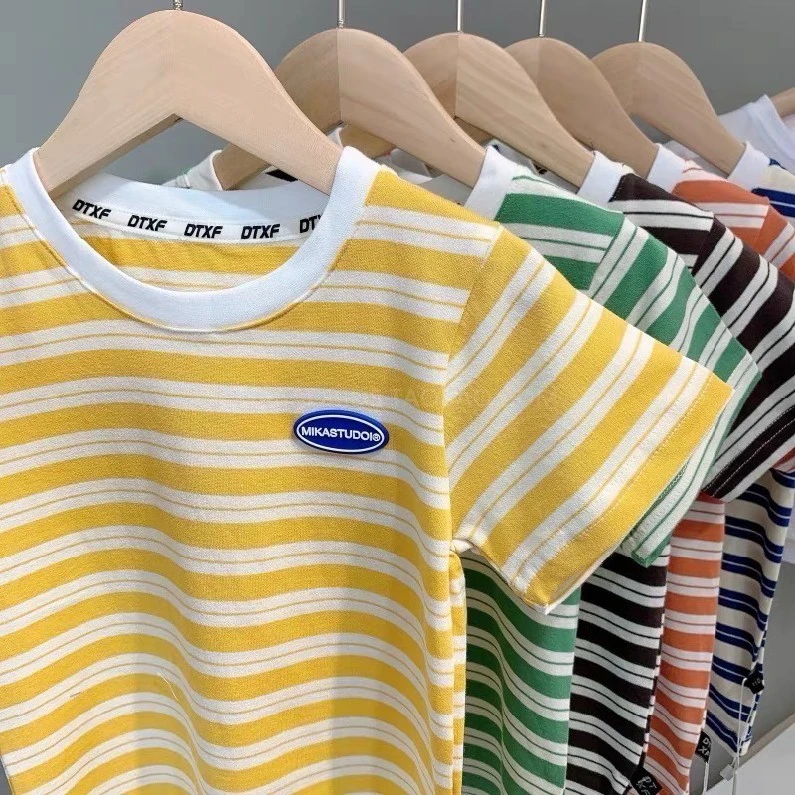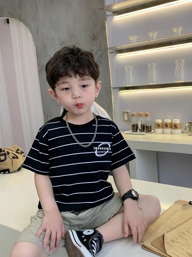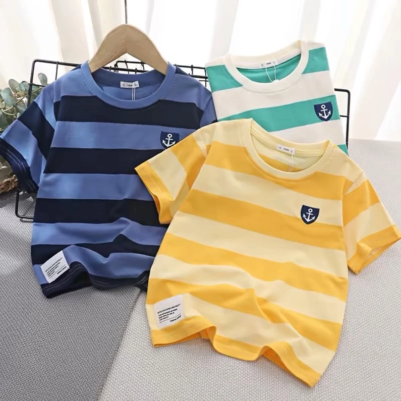 Invest in quality that lasts. These durable cotton t-shirts are built to withstand countless washes and wears, maintaining their shape and color. They're a practical and stylish solution for busy parents looking for reliable everyday clothing that their kids will love to wear. Make dressing up a breeze and give your child the gift of comfort and confidence with our fantastic striped cotton t-shirts!