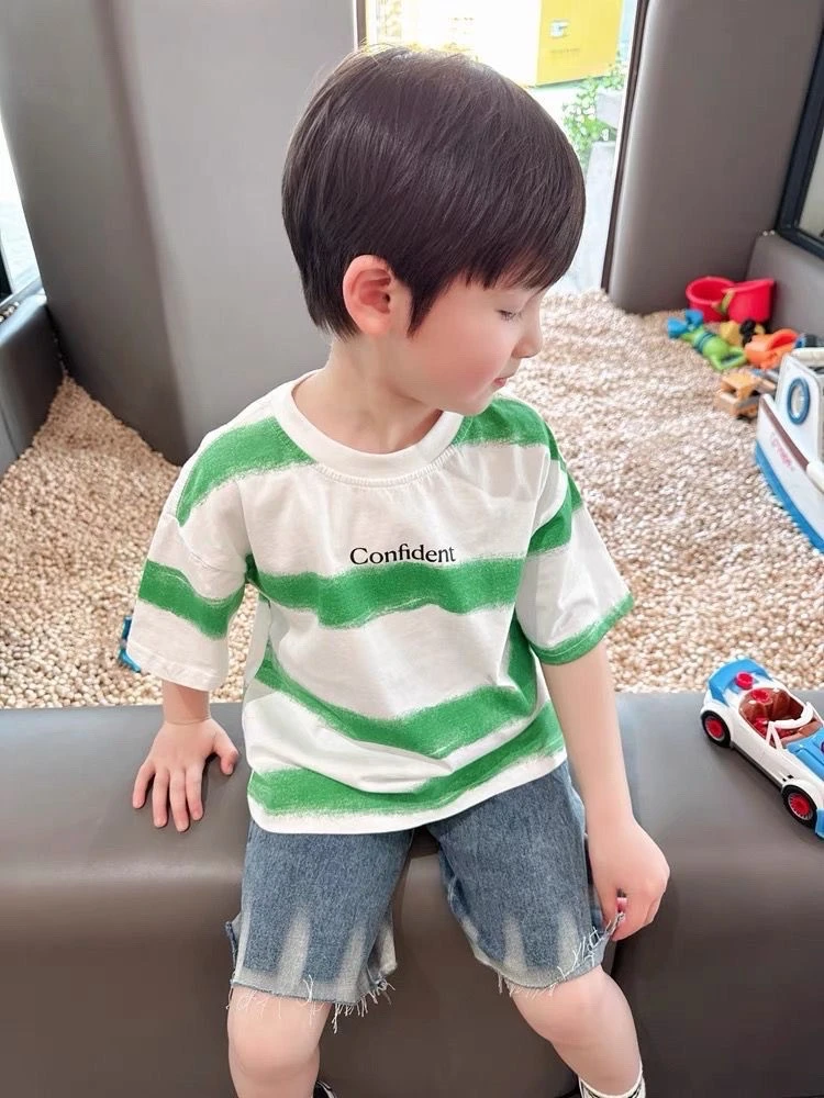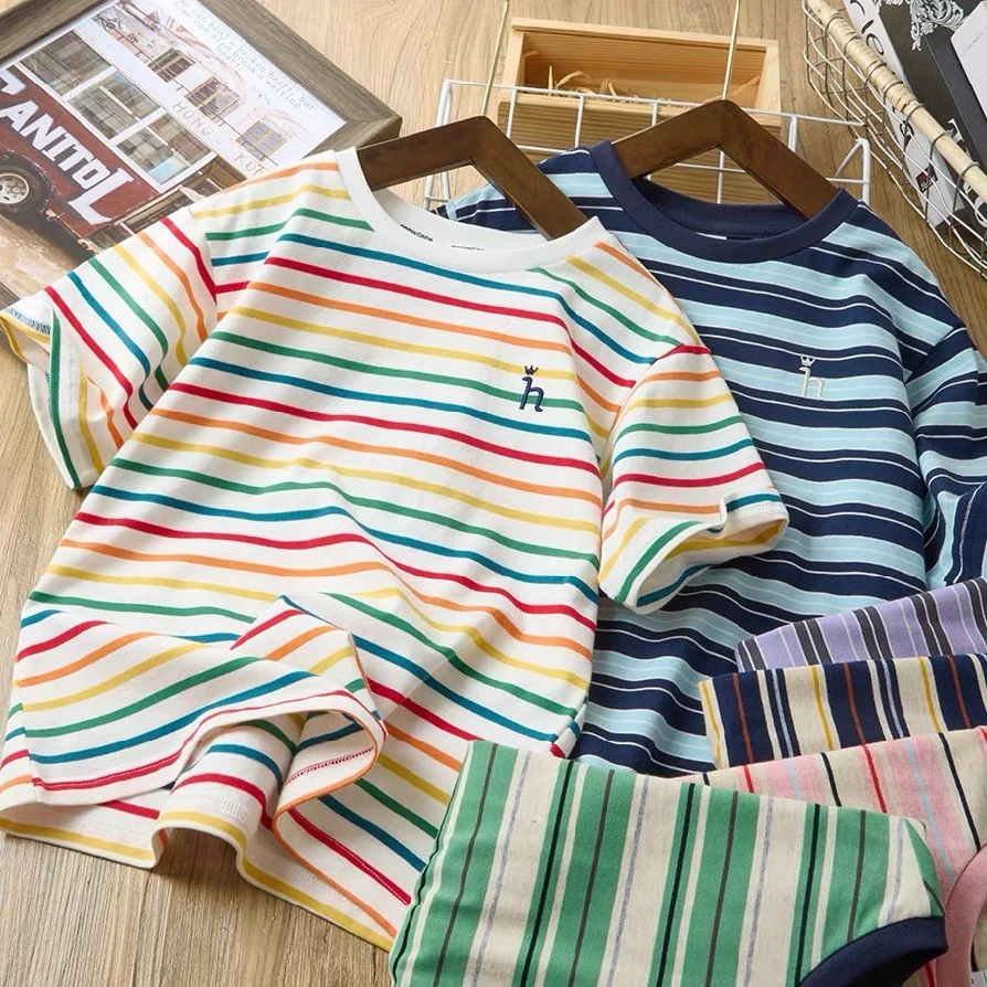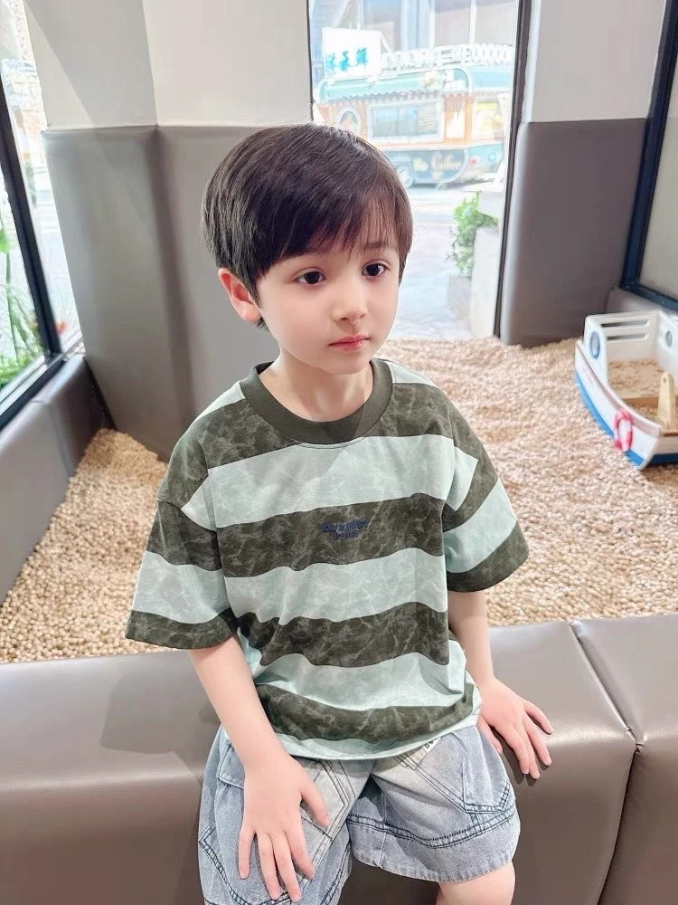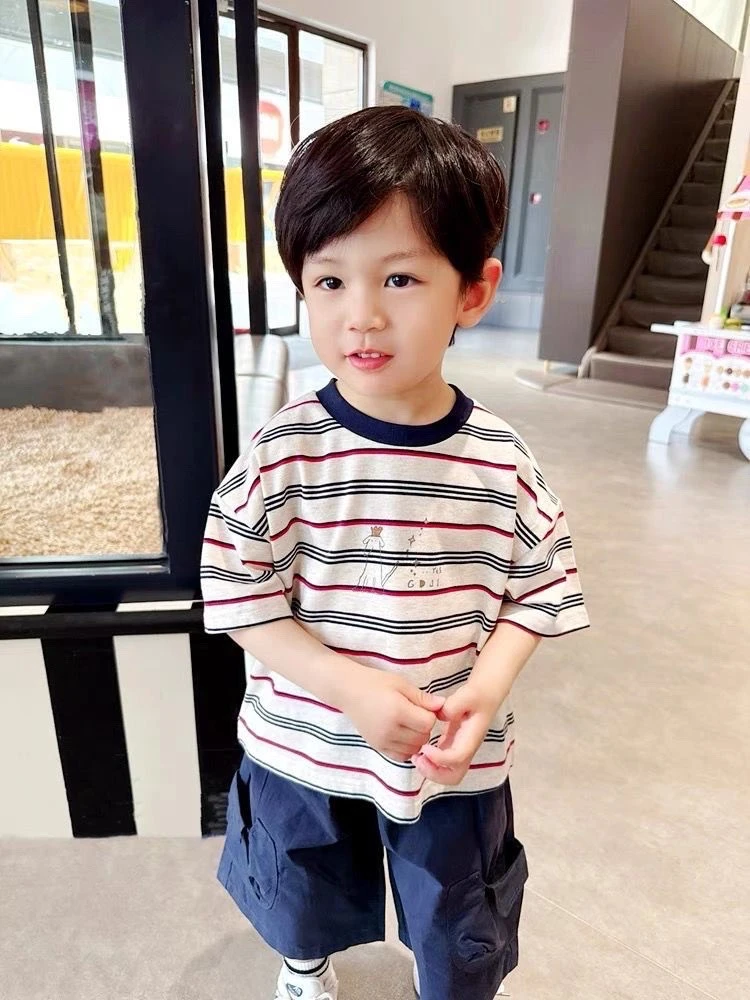 Invest in quality that lasts. These durable cotton t-shirts are built to withstand countless washes and wears, maintaining their shape and color. They're a practical and stylish solution for busy parents looking for reliable everyday clothing that their kids will love to wear. Make dressing up a breeze and give your child the gift of comfort and confidence with our fantastic striped cotton t-shirts!