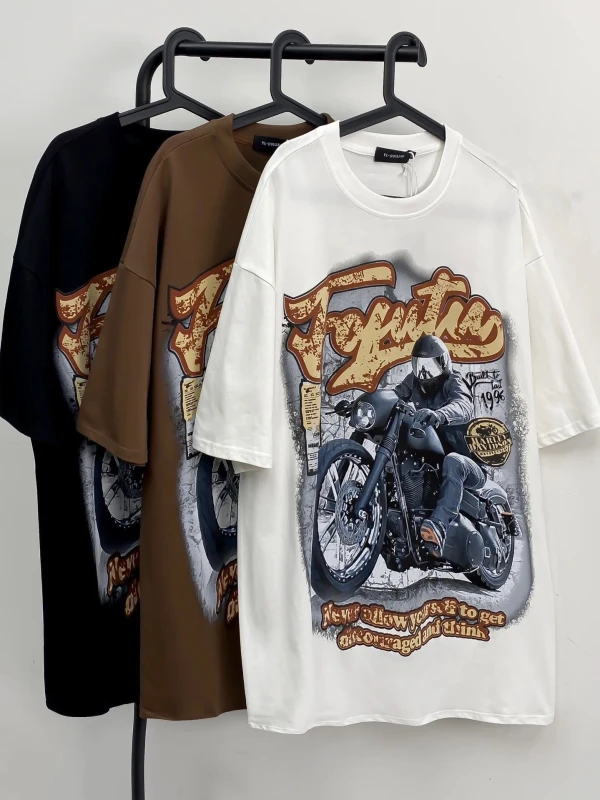Crafted from premium, ultra-soft cotton, our Retro Streetwear T-Shirt offers exceptional comfort that lasts all day long. The breathable fabric ensures you stay cool and comfortable whether you're cruising on your bike, hitting the city streets, or just relaxing with friends. With its classic, relaxed fit, this tee drapes perfectly, providing both freedom of movement and a flattering silhouette that complements any body type.